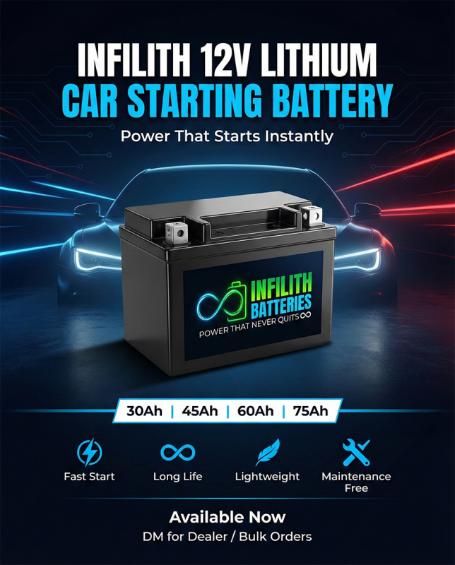 Infilith 12V Lithium Car Starting Battery (30Ah / 45Ah / 60Ah / 75Ah)